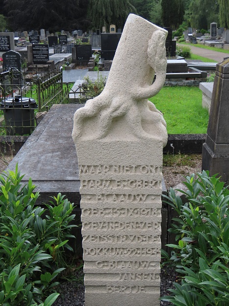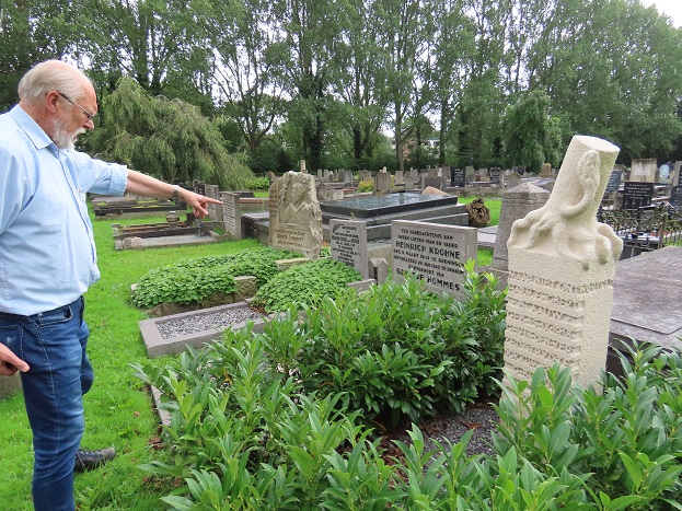 Vier slachtoffers liggen nu dus op de Groninger Noorderbegraafplaats en de overbuurman wees me hun graven aan. De twee aan de uiteinden van het rijtje waren bijzonder, want voorzien van beeldhouwwerk. De binnenste twee waren dertien in het dozijn.