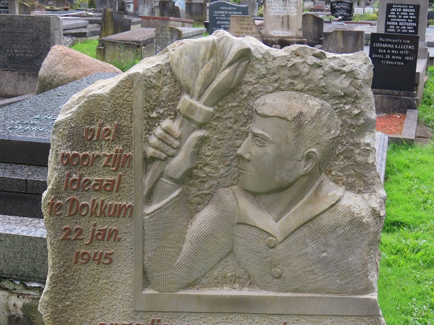 Geplaatst op: 14 augustus 2023 Hoort bij: Stad toen 4 reactiesBij zwembad de Parrel in de Paddepoel raakte ik van koers en belandde bij de ingang van de Noorderbegraafplaats. Daar was ik nog nooit geweest, dus besloot ik er even rond te kijken. Terwijl ik een plek zocht voor mijn fiets, kwam me een oudere man achterop. Het bleek een overbuurman, die er rustig even op de begraafplaats een pijp kwam roken. Hij noemde enkele illustere en notabele Groningers die hier lagen en troonde me mee naar een rijtje van vier graven, van stad-Groningers die op 22 januari 1945 in Dokkum waren gefusilleerd.