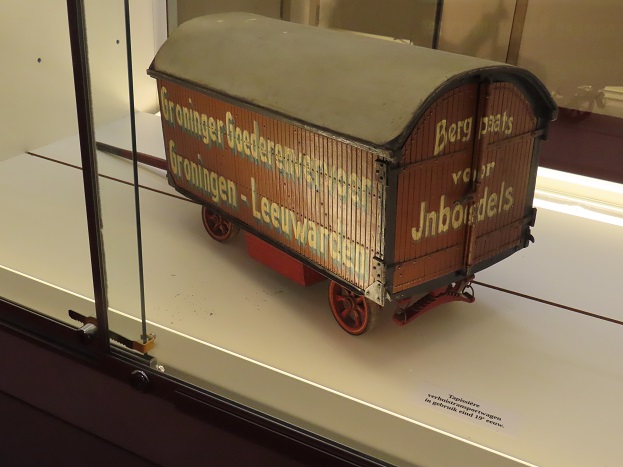 Geplaatst op: 31 maart 2024 Hoort bij: Stad toen Een reactie plaatsenIn de tentoonstellingsruimtes bij Nienoord zag ik gistermiddag modellen van twee verschillende gesloten wagens van een bedrijf dat zich Groninger Goederenvervoer noemde. Dacht gezien de belettering aanvankelijk dat het uit het eind van de negentiende eeuw stamde, maar het adverteerde voor het eerst in 1912 zowel landelijk (in het anrtirevolutionaire De Standaard) als regionaal (Nieuwsblad van het Noorden) en voor het laatst gebeurde dat in het Nieuwsblad van het Noorden anno 1936. Je mag dus aannemen dat het bedrijf van ongeveer 1912 tot 1936 heeft bestaan.