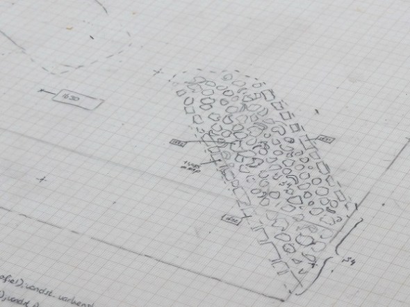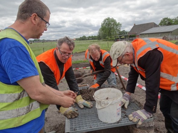 De mannen van de grove zeef. Er werden wat noppen aangetroffen van een noppenbeker, een duur stukje serviesgoed: