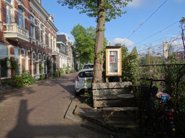Ook de Oosterpoort heeft tegenwoordig een buurtbieb, en wel aan de Lodewijkstraat – met zitje: