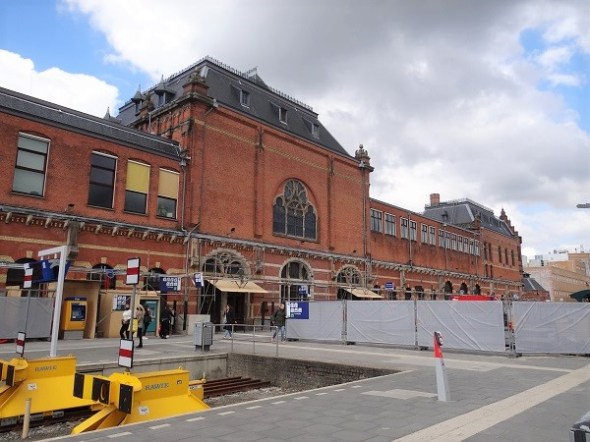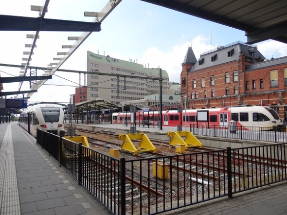 Links heb je de trein naar Leeuwarden, rechts die naar Roodeschool. Dit wordt een historisch plaatje, want de perronkappen komen terug en die rode Arriva-treinen maken straks plaats voor nieuwe blauwe: