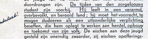 Bij de opening van het academische jaar, op 4 november, hield rector magnificus Kapteijn een tamelijk foute rede, die afgedrukt staat in het blad. Een student heeft een enkele passage met pen onderstreept, het is ook de enige persoonlijke toevoeging in al die nummers:
