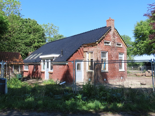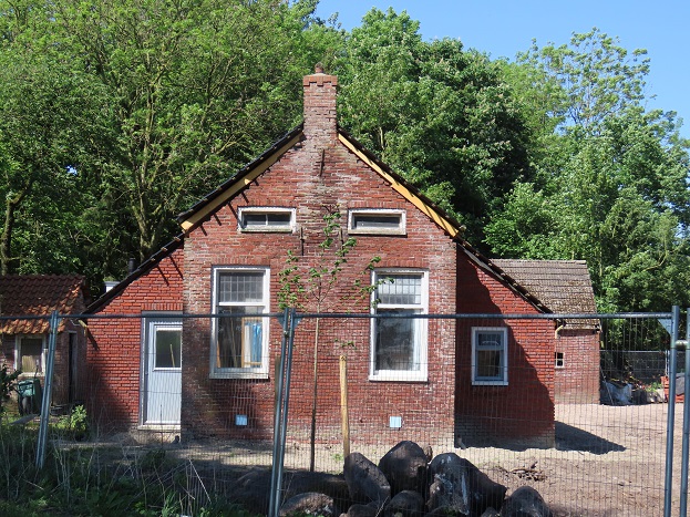 En zie daar, de opknap is onderweg. De dakpannen, delen van de gevels en ook de kozijnen zijn al vervangen. Iemand moet hier flink wat geld in hebben gestoken – hulde voor deze weldoener van het veenkoloniale erfgoed! Benieuwd of die er zelf gaat wonen dan wel het verhuurt. Er ligt een leuke lap grond bij, er valt een mooi paradijsje van te maken, met alle vogels in de omgeving ook.