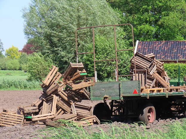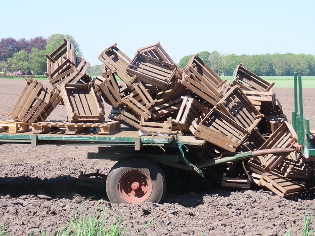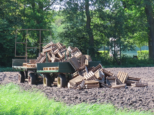 Van oudsher is hier veel tuinbouw. Hier kreeg de wakkere oostenwind vat op stapels groentekratten: