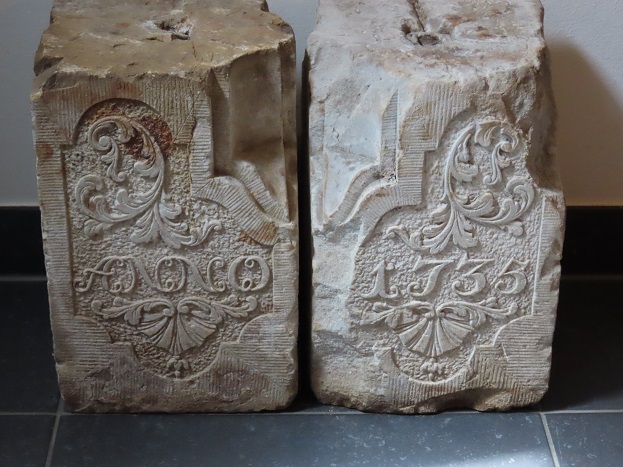Steenhouwerswerk- de voetstukken (?) van een poort anno 1635: