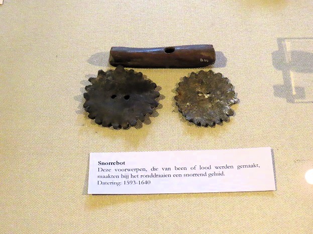 Snorrebotjes: door de gaatjes midden op de gekartelde schijfjes of staafjes ging draad, dat je zo ver vermogelijk opwond. Uiteindelijk trok je aan de lange einden en zo ontstond een zoemend, snorrend geluid: