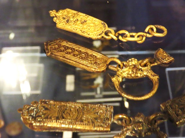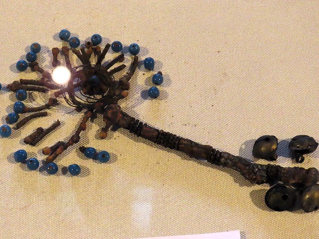 Rammelaar van koperdraad en kralen, zoals er ook elders wel gevonden zijn bij opgravingen: