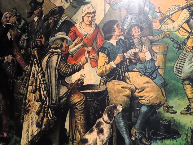 Gezien hun liefhebberij voor Trijntje (Mutter Courage?) , wijntje en kaartspel gaven de meeste officieren weinig om. het geloof