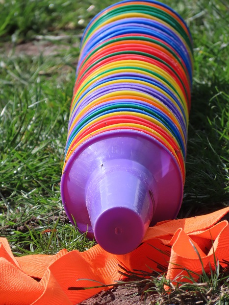 Pylonen voor oefenpartijtje op voetbalveld: