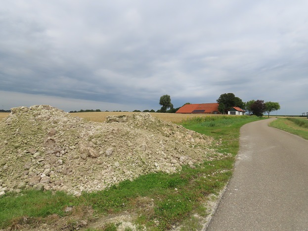 Geplaatst op: 14 april 2024 Hoort bij: Geschiedenis, Uncategorized Een reactie plaatsenBij de Aduarder Voorwerk, een buurtschap van later vier boerderijen, ontstaan uit een kloosteruithof van de middeleeuwse abdij Aduard, zijn in een pas gegraven kabelsleuf in een wegberm ten noorden van het Van Starkenborghkanaal, recent opnieuw bakstenen tevoorschijn gekomen, die waarschijnlijk afkomstig zijn van een tweetal schuren of grangiae, waarin de lekenbroeders van en voor het klooster graan opsloegen en levende have stalden. De schuren stonden naast en in het verlengde van elkaar.