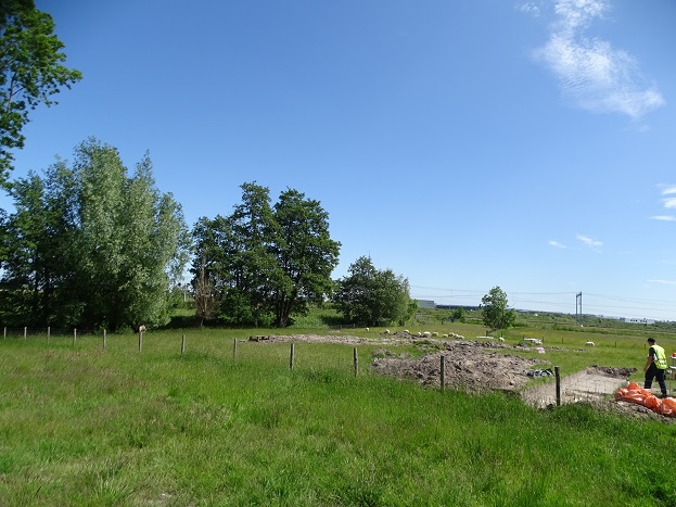 Uitzicht vanaf de plaats van samenkomst: met erachter een deel van het opgravingsgebied: