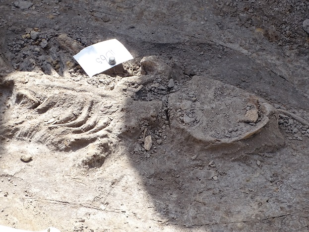 Volgens de kloosterregels mocht er geen of weinig vlees gegeten worden, maar toch lag er nogal wat slachtafval. Voorschrift en [praktij wijken wel vaker uiteen. Dit veulen werd zonder hoofd begraven, mogelijk wegens ziekte: