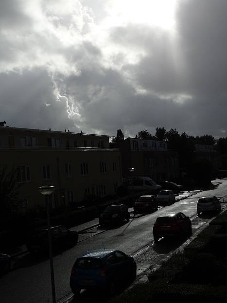Een paarminuten verder fietsen naar Oostwold lagen in het land enkele daken als op de foto, en er stond een soort van pleehokje naast. Gezien de stroomkabels had een en ander wellicht te maken met zonnepanelen. Wie het weet, mag het zeggen.