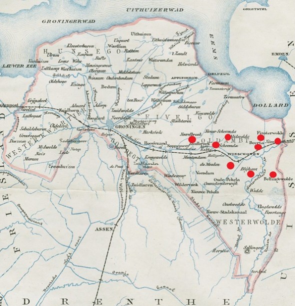 Allereerst de plaatsen waar deze hoogste bieders vandaan kwamen – deze zijn met rode stippen op bovenstaand kaartje weergegeven. Die stippen overziende, was de veiling van regionaal belang: alle hoogste bieders kwamen uit de kleistreek bij de Dollard. Zeven waren er afkomstig uit Beerta en twee uit Finsterwolde. Andere plaatsen uit de omgeving waren slechts met een enkele hoogste bieder vertegenwoordigd. Opvallend is dat de hamrikken (Nieuw-Beerta, Nieuwolda en Nieuw-Scheemda) als plaats van herkomst ontbreken, net als Oostwold, Nieuweschans en Winschoten.
