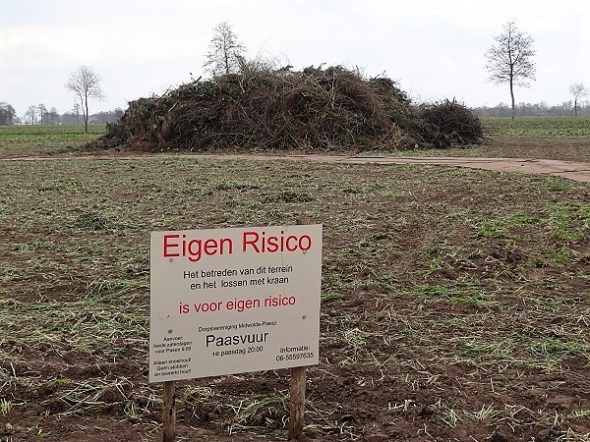 Drie paasbulten in aanbouw bij de Traan en de Tolberterpetten – hier gaat dus al dat gesnoeide hout heen: