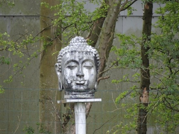 Een Boeddha achter gaas bij het Schilligepad, tussen Tolbert en Boerakker: