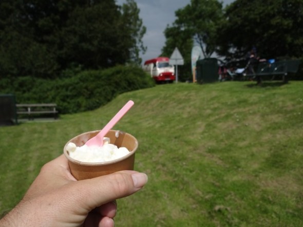 Op de Wierumerschouw staat tegenwoordig ’s zondags een busje waarin twee dames yoghurtijs verkopen. Het smaakte best:
