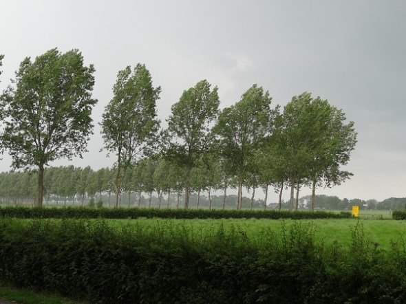 Gezicht op dezelfde bomenrij vanaf het Lucaspad naar Ezinge: