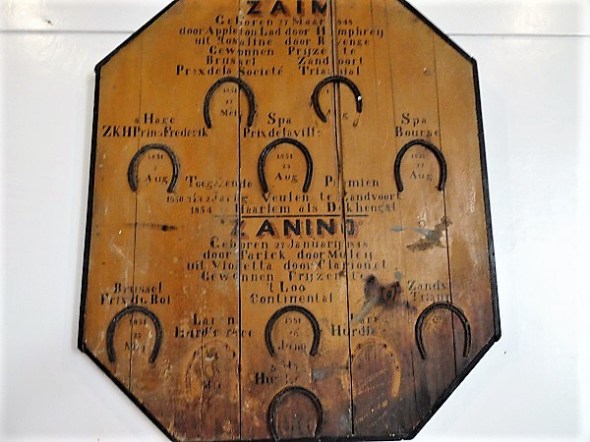 Bord in Rijtuigmuseum Nienoord demonstreert hoe je hoefijzers ophangt: