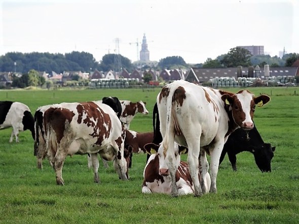 Op het Oosterzand stonden hekken dwars over de Zandumerweg. Daar moest rundvee langs, van het weiland aan de rechterkant van de weg naar de melkstal aan de linkerkant. De boer en de boerin waren gezamenlijk bezig de beesten zo ver te krijgen – het was mooi weer, daarom wilden ze niet erg opschieten, aldus de boerin, die zich hiervoor leek te generen. Ten onrechte wat mij betreft: