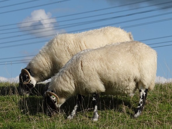 Drentse heideschapen op de dijk bij Hekkum: