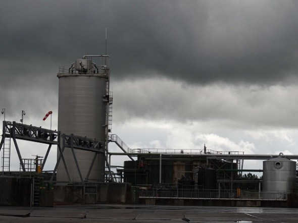 Vanaf een bepaald punt op de Waardweg heb je mooi zicht op de achterkant van de Grijpskerker zuivelfabriek. Deze doet denken aan een grafiek: