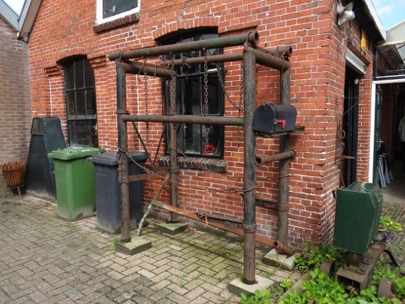 Niet op mijn planning, maar wel heel aardig: smederij Poort in het centrum van Zuidhorn. Dat lelijke buizengeval voor de gevel is een noodstal voor het beslaan van paarden: