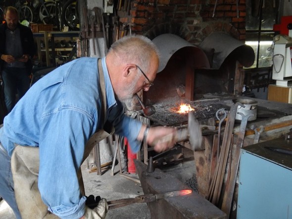 Binnen was de smid – afkomstig uit Niekerk – bezig met het maken van een beitel:
