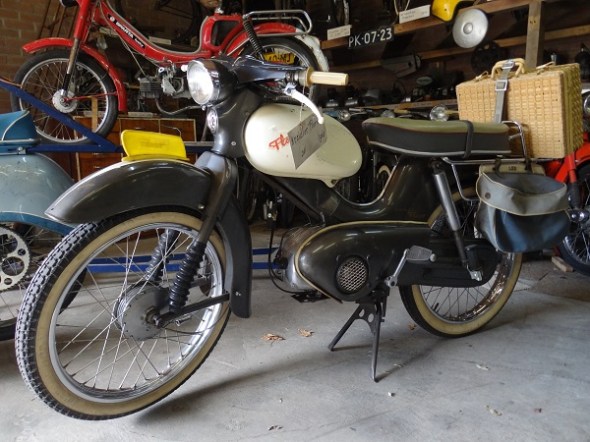 In de belendende schuur stond een vrij omvangrijke verzameling oude brommers, zoals deze Kreidler Florett (meen dat mijn vader begin jaren 60 ook nog op zoeen heeft gereden):