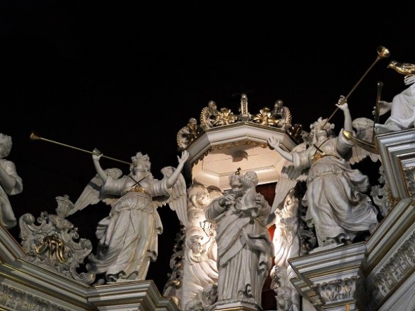 De bovenkant met de Heilige Maagd, het kindeke Jezus en engelen met bazuinen: