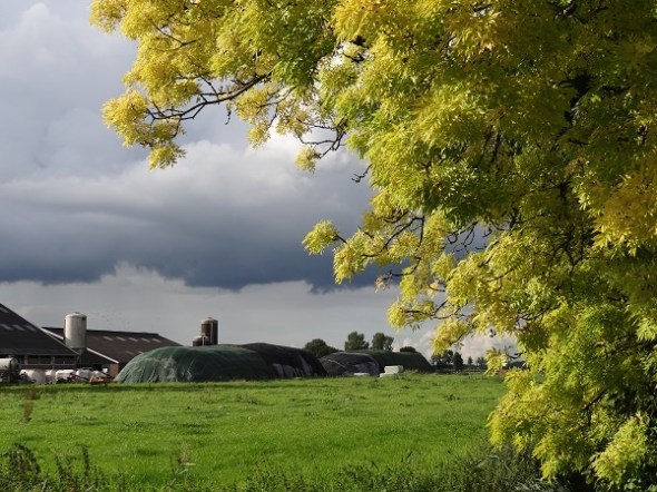 Geplaatst op: 9 september 2017 Hoort bij: Westerkwartier 3 reactiesBij de suikerfabriek zag het er even heel onvriendelijk uit en heb ik een kwartiertje onder een boom staan schuilen: