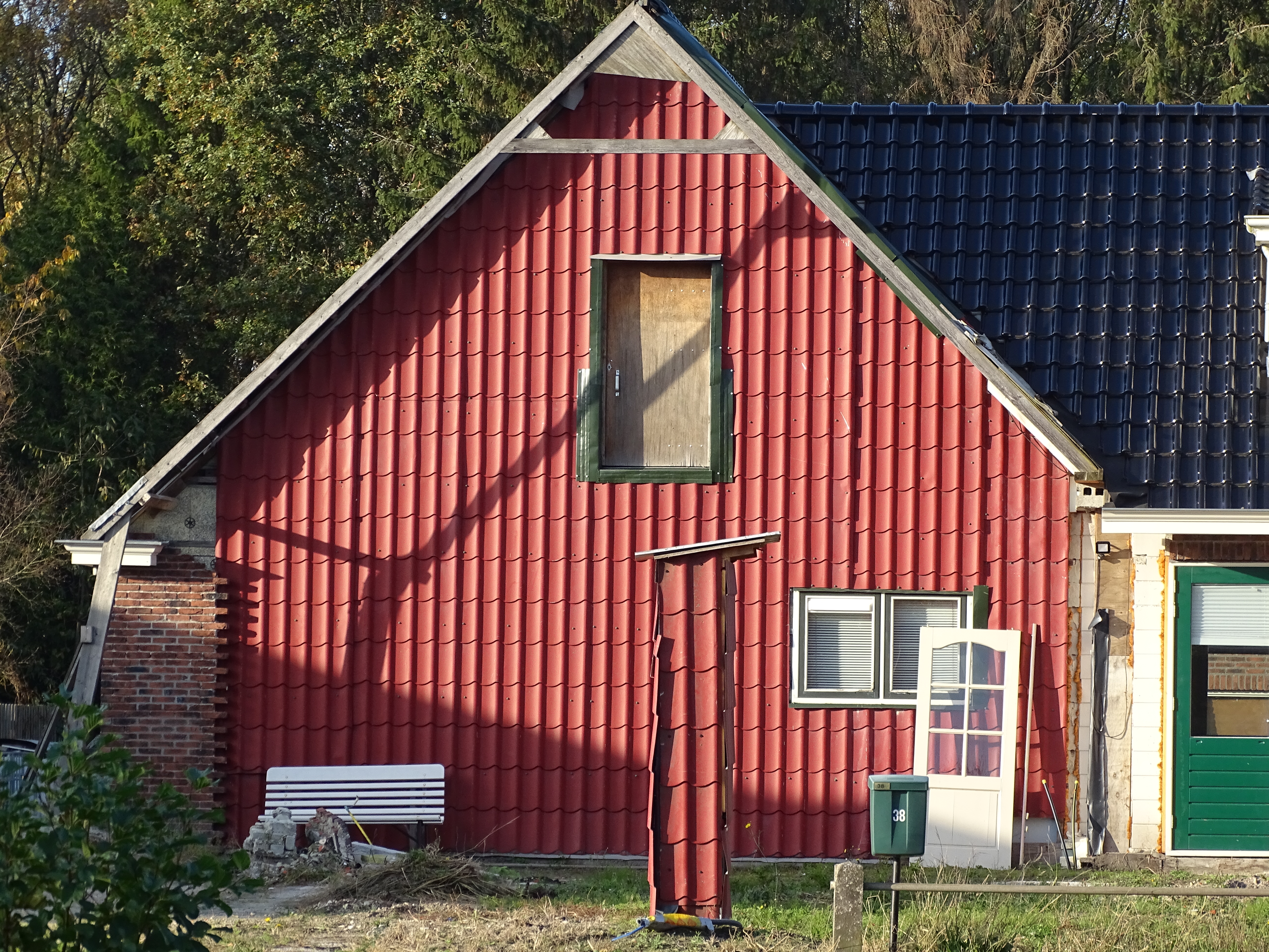 Ook opgeknapt, een boerderijtje aan de Fanerweg bij de Dijkstreek. De rietdekker is er nog bezig: