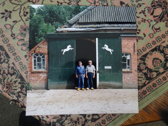 Mijn beide achterneven Freerk en Johannes Nienhuis, toen ze nog leefden en in Feerwerd woonden. op het achtererf van hun boerderij, Onnesweg 18: