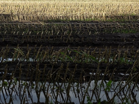 Land aan de oostkant van de Lietsweg – vrijwel egaal bezet met fluitekruid: