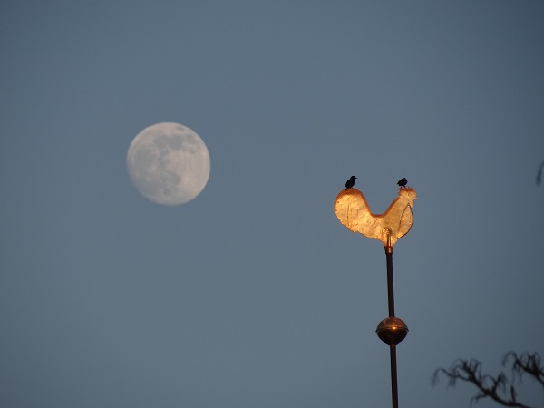 Windvaan in de vorm van een (wal)vis op de Ichthuskerk te Oldekerk: