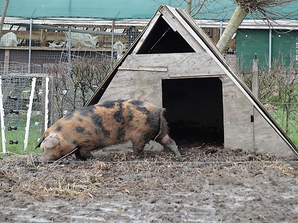 Zijlvesterweg tussen Sleperstil en Dorkwerd – dit varken stond daarnet nog lekker binnen uit de deur te kijken, wat de betere foto zou hebben opgeleverd: