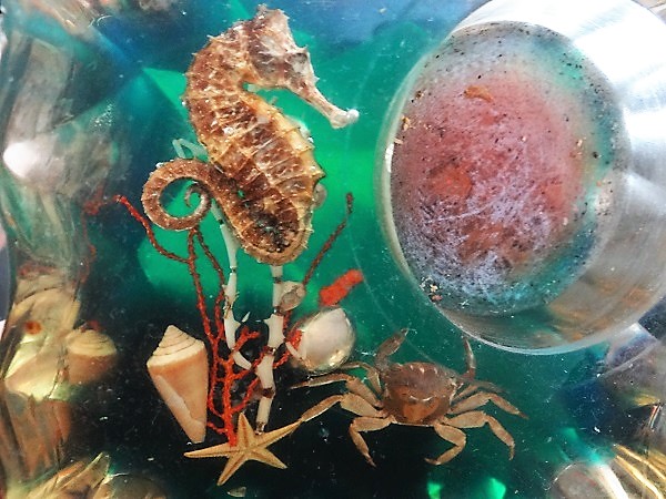 – De asbak van mijn achterneef (perspex met zeegezicht):