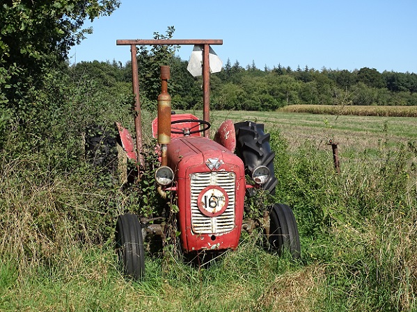 Busselterweg – langzamerhand overgroeid rakende oude tractor: