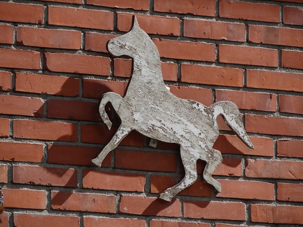 Vrolijk paard – gefiguurzaagd ornament in het buitengebied van Peize: