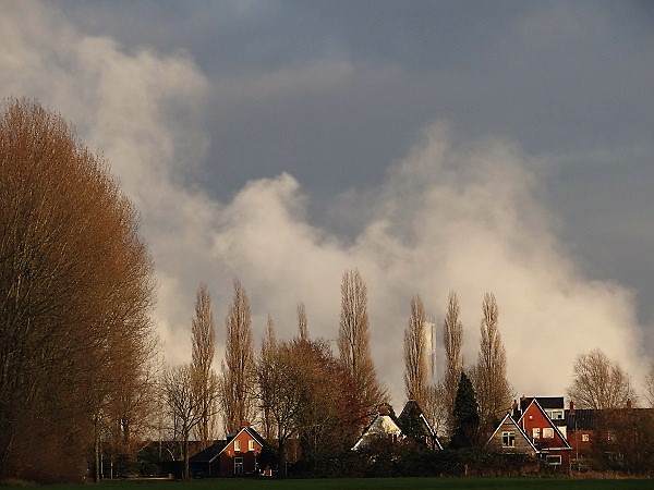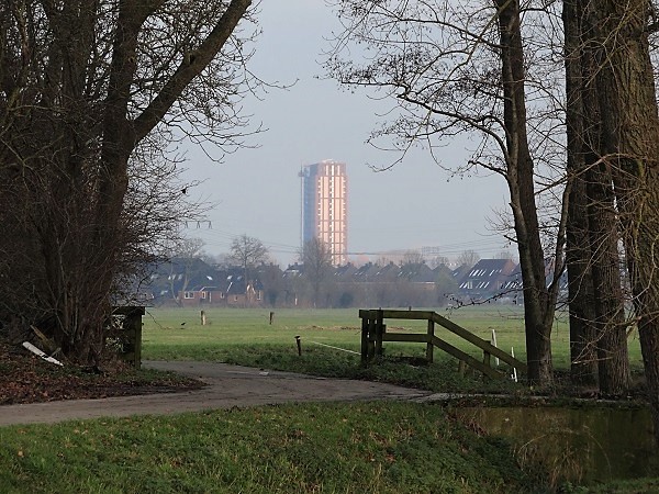 Vanaf boerderij Van Zanten, Leegkerk – de nieuwe toren in de verte: