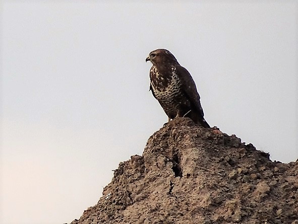De Poffert bij de Pannekoek: buizerd met ‘ambtsketen’ op zandbult: