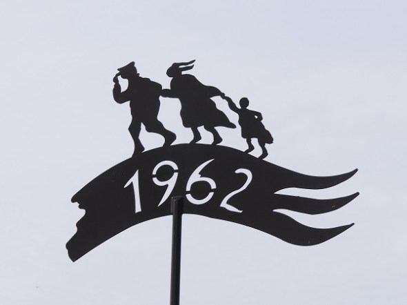 Windvaan ter herdenking van de stormvloed van 1962, toen de Dollarddijk hier brak, zodat er 2 meter water in het achterland kwam te staan: