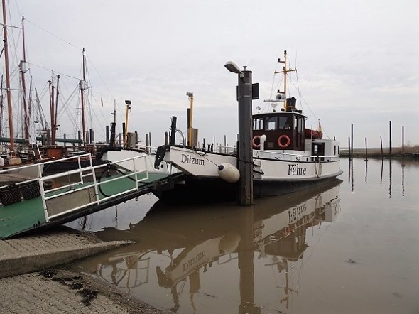 Het veerpontje naar Petkum aan de overkant van de Eems dat dagelijks tussen 10.00 en 1700 uur op elk heel uur afvaart, met uitzondering van 12.00 uur, als de bemanning gaat lunchen. Door de week ook nog wat vroeger en zelfs heel vroeg, maar zie hiervoor de dienstregeling;