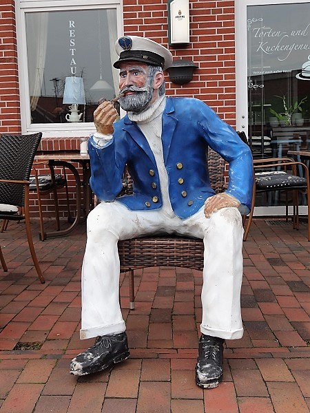 Een weinig spraakzame lokalo, kennelijk gepensioneerd zeerob, smoorde een pijpje bij zijn stamcafé: