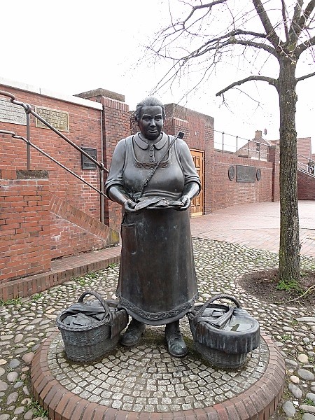 Terwijl er tegenover een visvrouw haar waren aanbood: