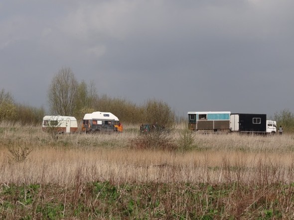 Geplaatst op: 15 april 2018 Hoort bij: Stad nu 4 reactiesOp het terrein bij de vloeivelden van de voormalige Groninger suikerfabriek trok ter hoogte van het Hegepad een colonne campers, caravans en kleine vrachtwagens binnen. Vroeg me even af of dit de grondkrakers van even verderop waren, maar daarvoor zagen deze wagens er te netjes uit. In deze omgeving zag ik hazen en fazanten, momenteel krijgen of hebben die jongen. Ik zou het jammer vinden als deze vestiging hier van een nieuwe groep ten koste van de natuur zou gaan: