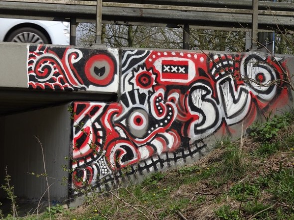Graffiti met horizontaal Amsterdams stadswapen, viaduct Stadspark: