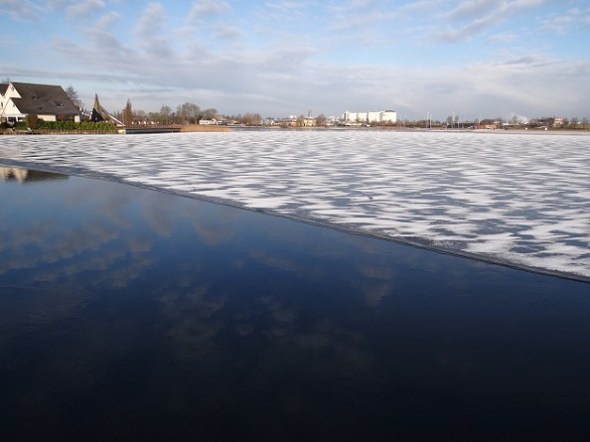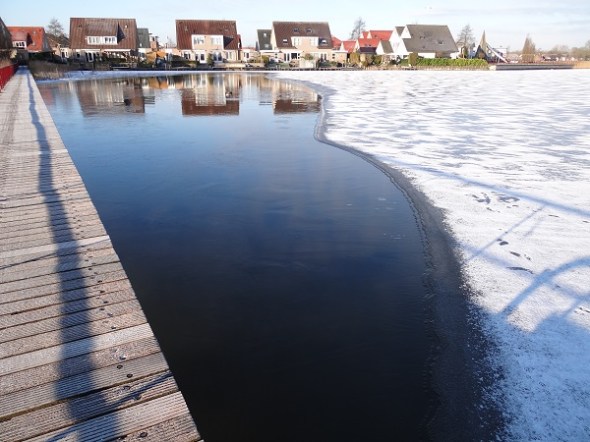 Vanmiddag vanaf de Werkmanbrug – ronde patronen op het ijs: