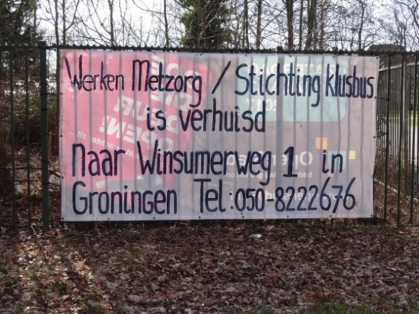 Verhuisbericht, achteringang Stadspark bij de Peizerweg: